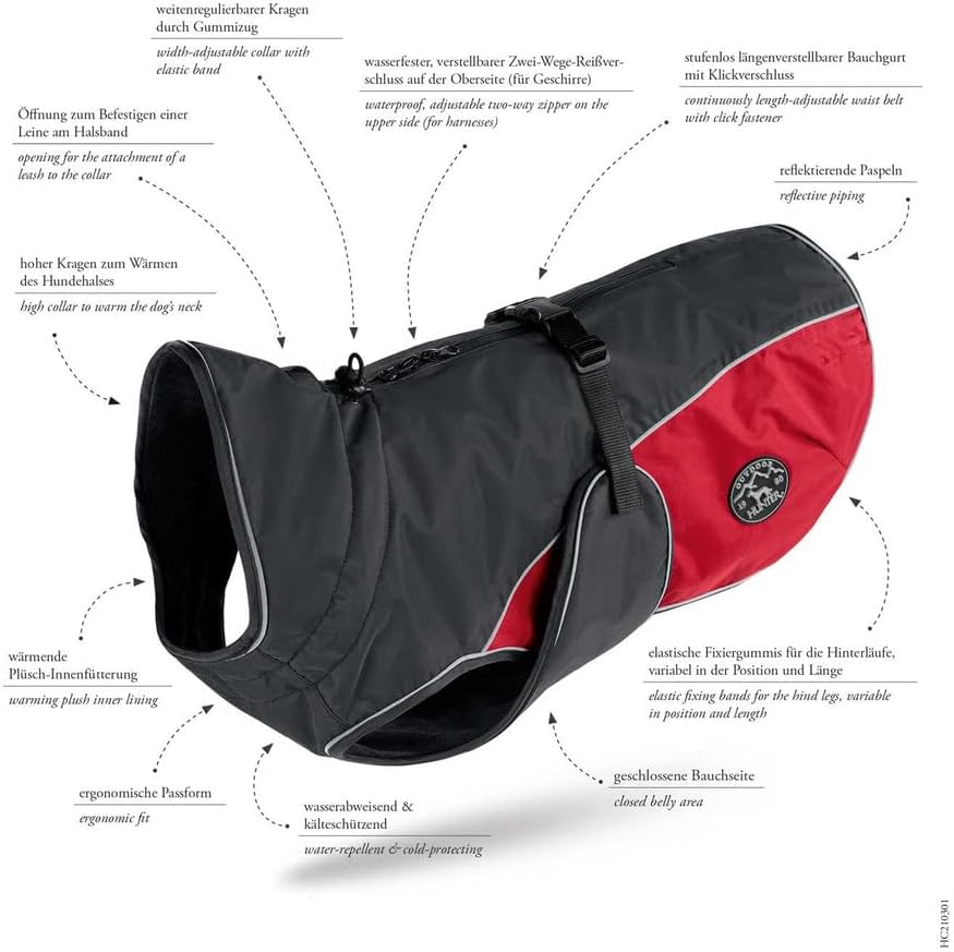 HUNTER UPPSALA COZY Hundemantel, Wintermantel, wasserabweisend, reflektierend, 35, anthrazit/rot ant