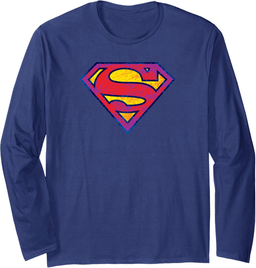 Superman Neon Distress Logo Langarmshirt