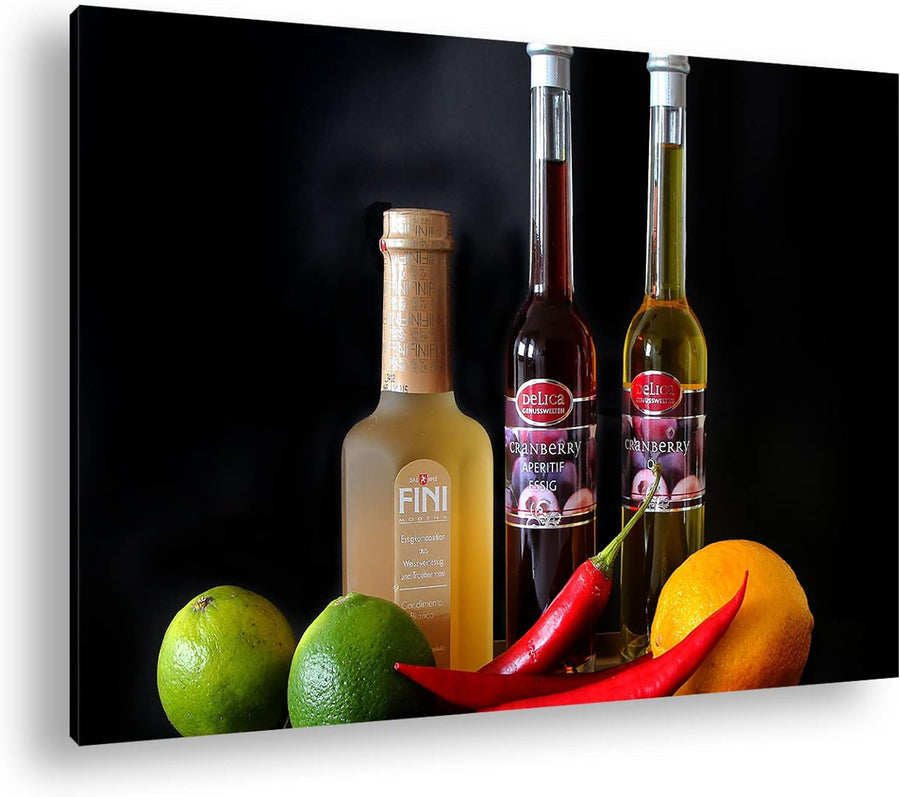 deyoli Dark bunte Lebensmittel mit Essig im Format: 80x60 als Leinwandbild, Motiv fertig gerahmt auf