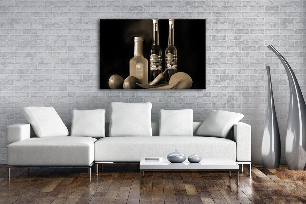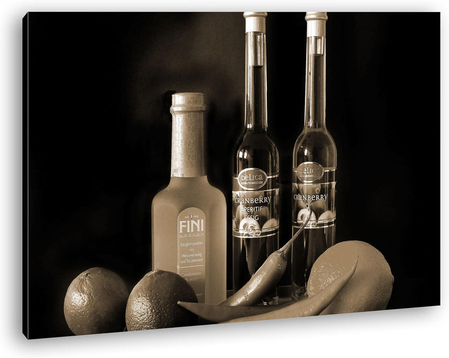 deyoli Dark bunte Lebensmittel mit Essig Format: 80x60 Effekt: Sepia als Leinwandbild, Motiv fertig