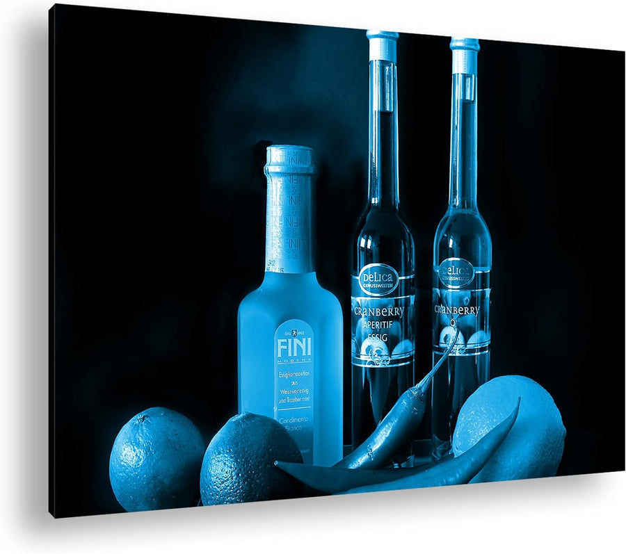 deyoli Dark bunte Lebensmittel mit Essig Format 80x60 Effekt: Monocrome Blau als Leinwandbild, Motiv