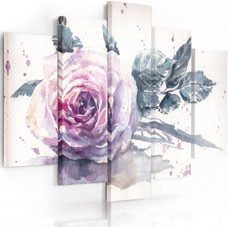 Feeby Frames, Leinwandbild Bilder Wand Bild - 5 Teile - Wandbilder Kunstdruck (Blumen, LICHT LILA RO