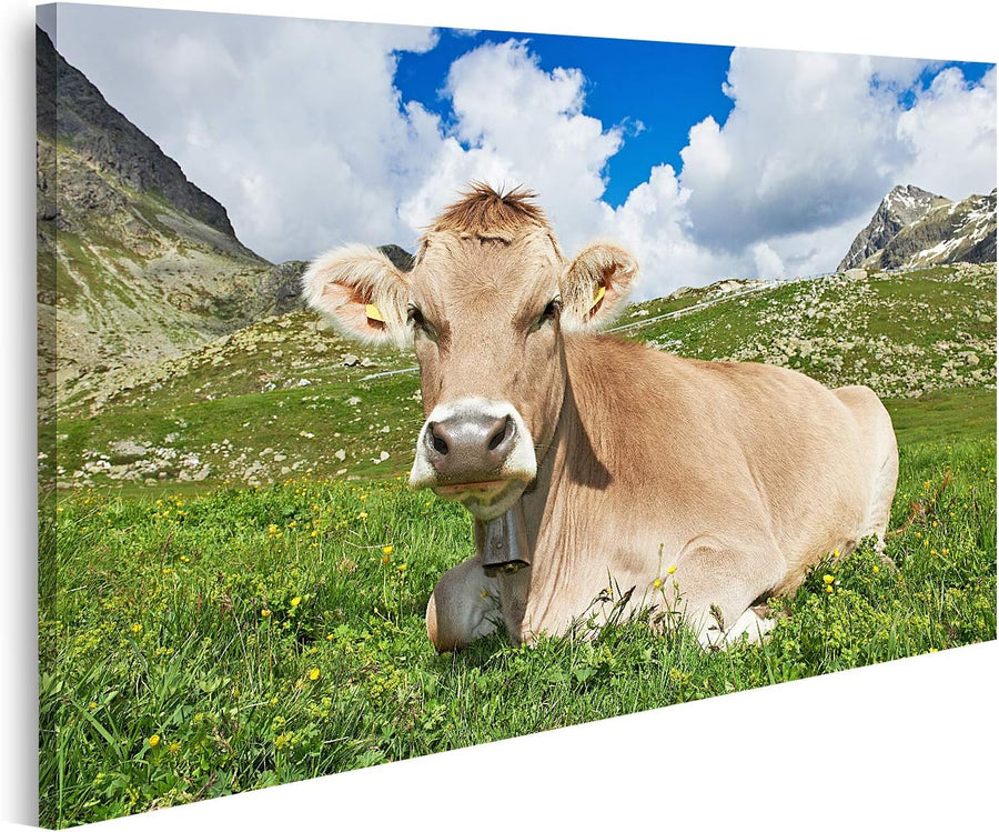 islandburner Bild auf Leinwand Braune Kuh Auf Grüner Grasweide Bilder Wandbilder Poster Leinwand 80x