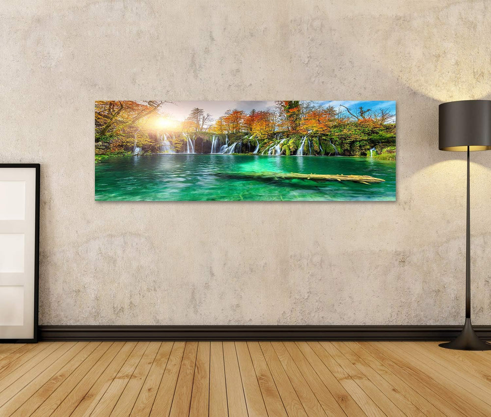 islandburner Bild auf Leinwand Bunte Aututmn Landschaft Wasserfälle Plitvice National Park Kroatien