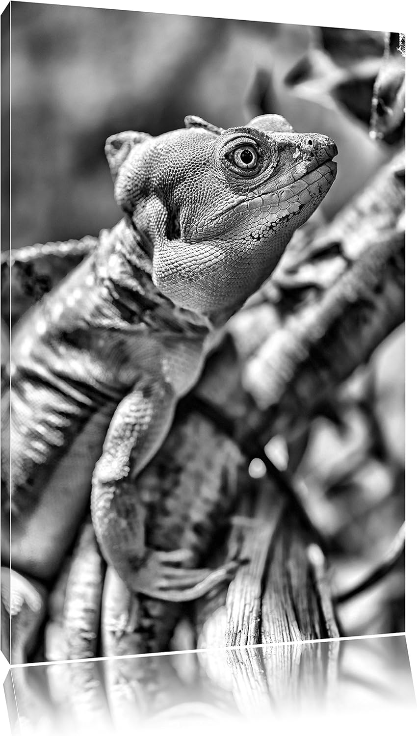 Pixxprint Monocrome, grünes Chamäleon, Format: 100x70 auf Leinwand, 100x70