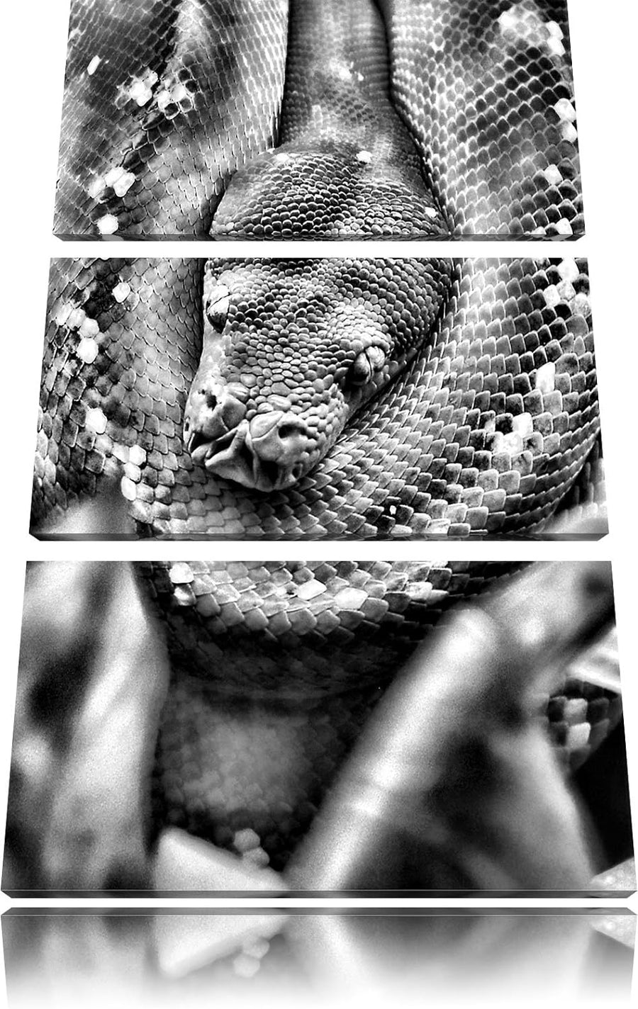 Pixxprint Monocrome, Grüne giftige Schlange 3-Teiler Leinwandbild 120x80 Bild auf Leinwand