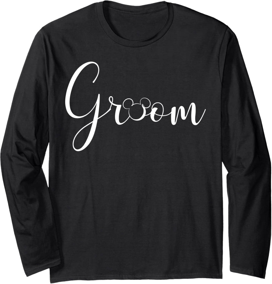 Disney Mickey Mouse Groom Cursive Black Text Logo Langarmshirt