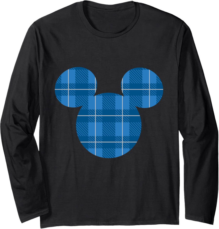 Disney Mickey Mouse Head Icon Christmas Holiday Plaid Langarmshirt