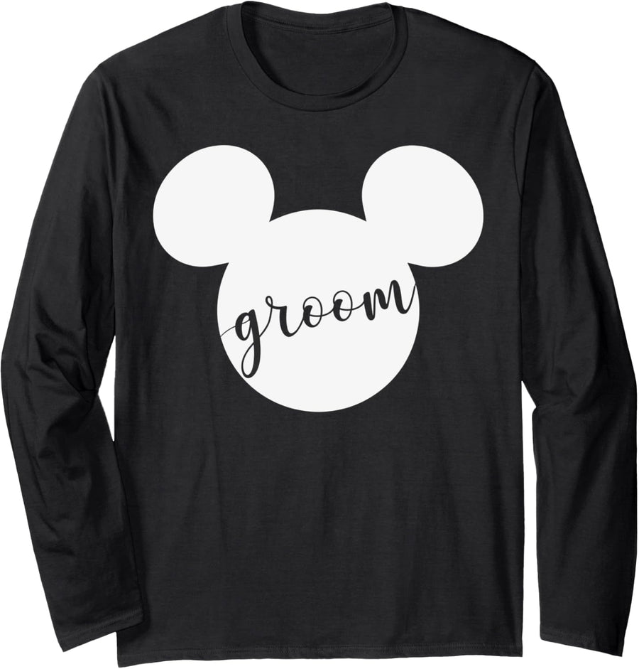 Disney Mickey Mouse Head Silhouette Groom Cursive Text Langarmshirt