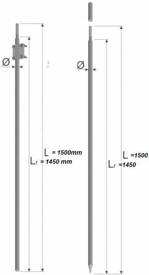 Tiefenerder Erder Erdung Staberder feuerverzinkt Ø20mm 1500mm 1,5m SET Längenauswahl (SET 3000mm 2x1