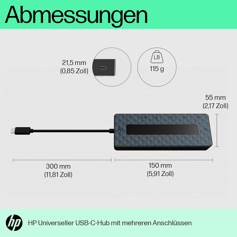 HP USB-C-Multiport-Hub 7-in-1, 1x HDMI 2.0, 1 x DisplayPort 1.2, 2 x USB-A, 1 x USB-C, 1 x USB-C -Pa