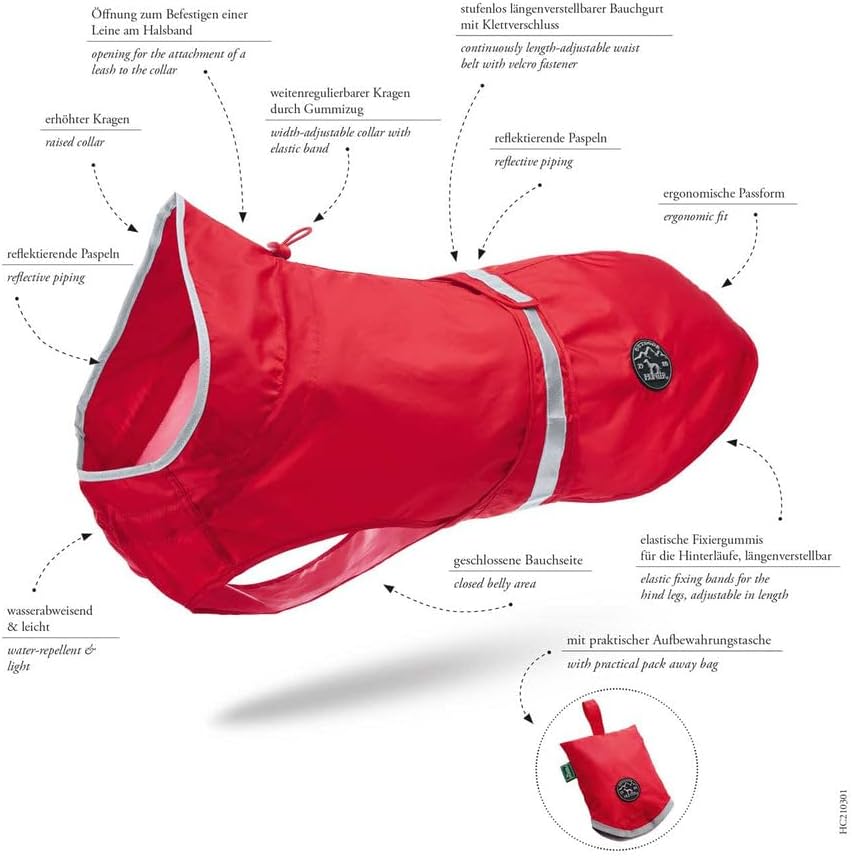 HUNTER UPPSALA RAIN Hunde-Regenmantel, mit reflektierenden Streifen, 35, rot rot 35, rot 35
