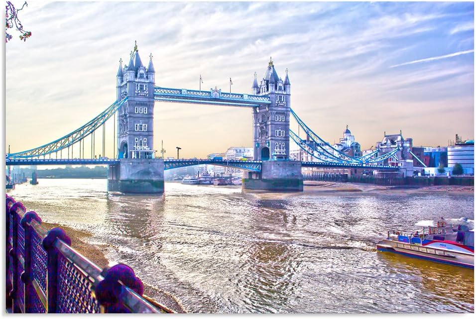 Feeby Frames, Leinwandbild, Bilder, Wand Bild, Wandbilder, Kunstdruck 60x80cm, LONDON BRÜCKE, AUSSIC
