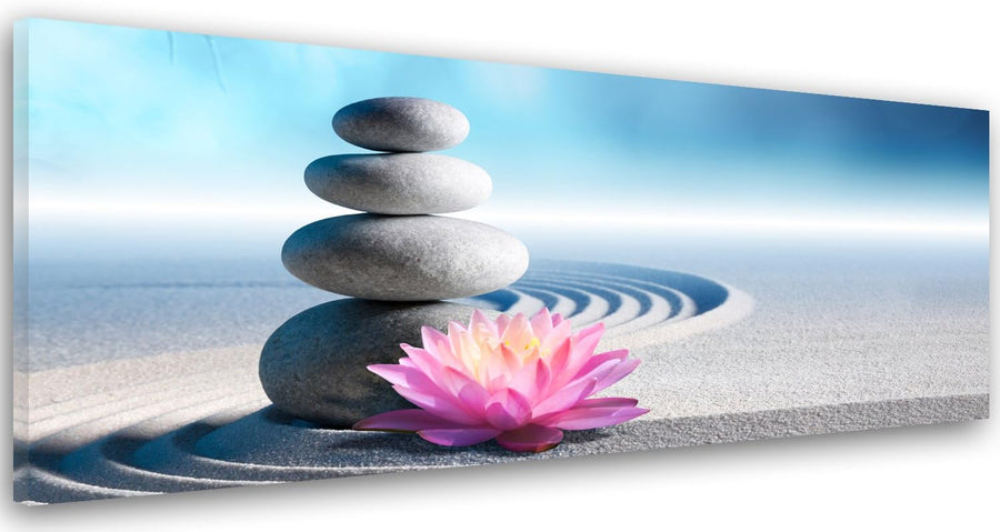 Feeby Frames, Leinwandbild, Bilder, Wand Bild, Wandbilder, Kunstdruck 30x90cm, STEINE, BLUME, SAND,