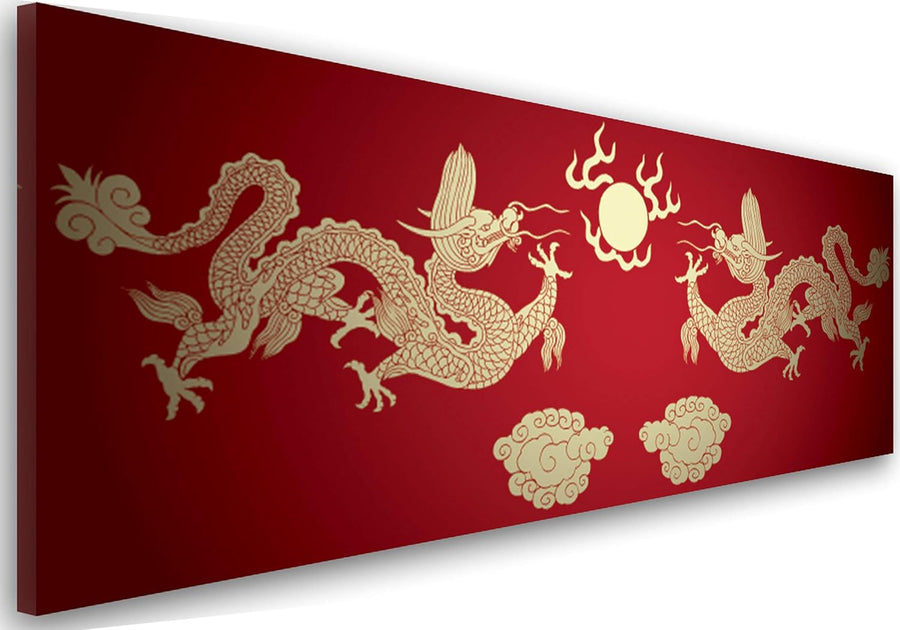 Feeby Frames, Leinwandbild, Bilder, Wand Bild, Wandbilder, Kunstdruck 50x150cm, DRACHEN, KULTUR, MUS
