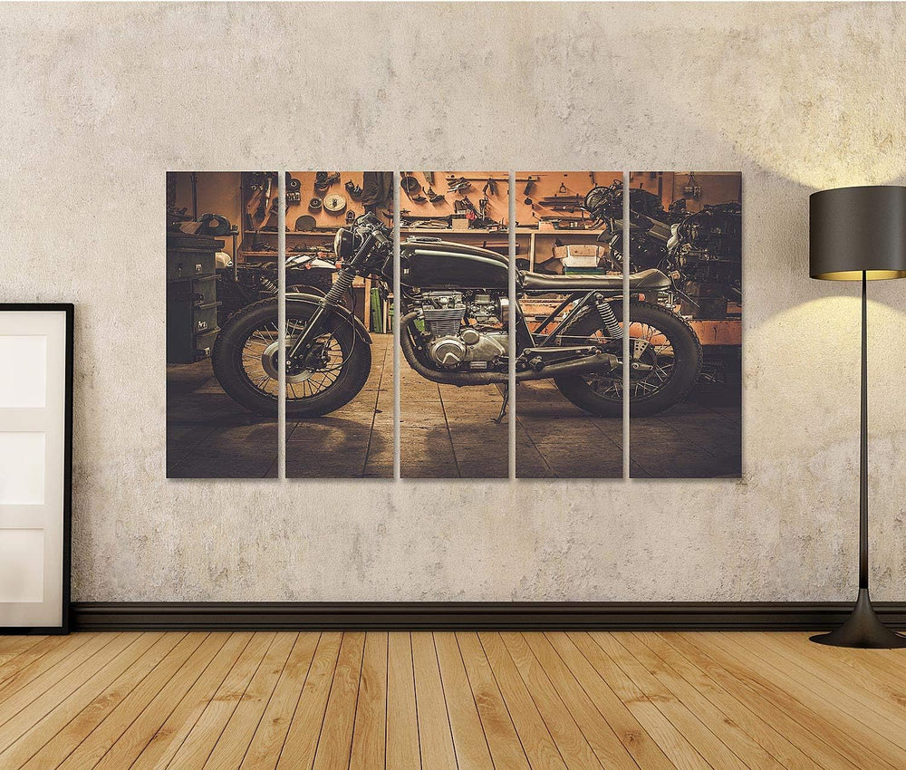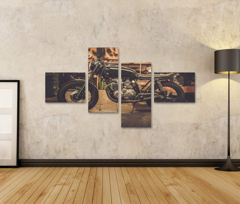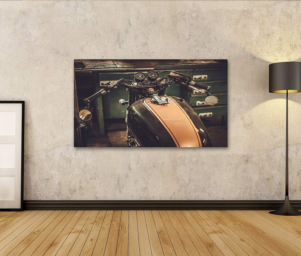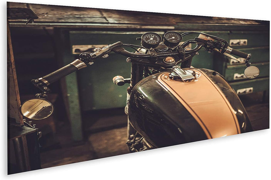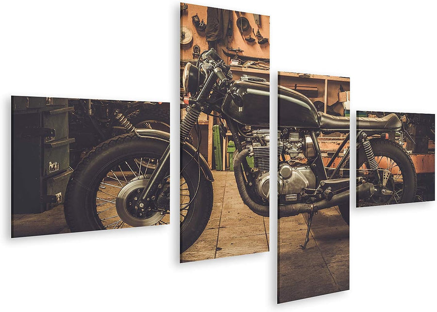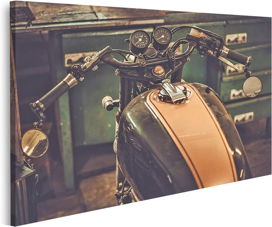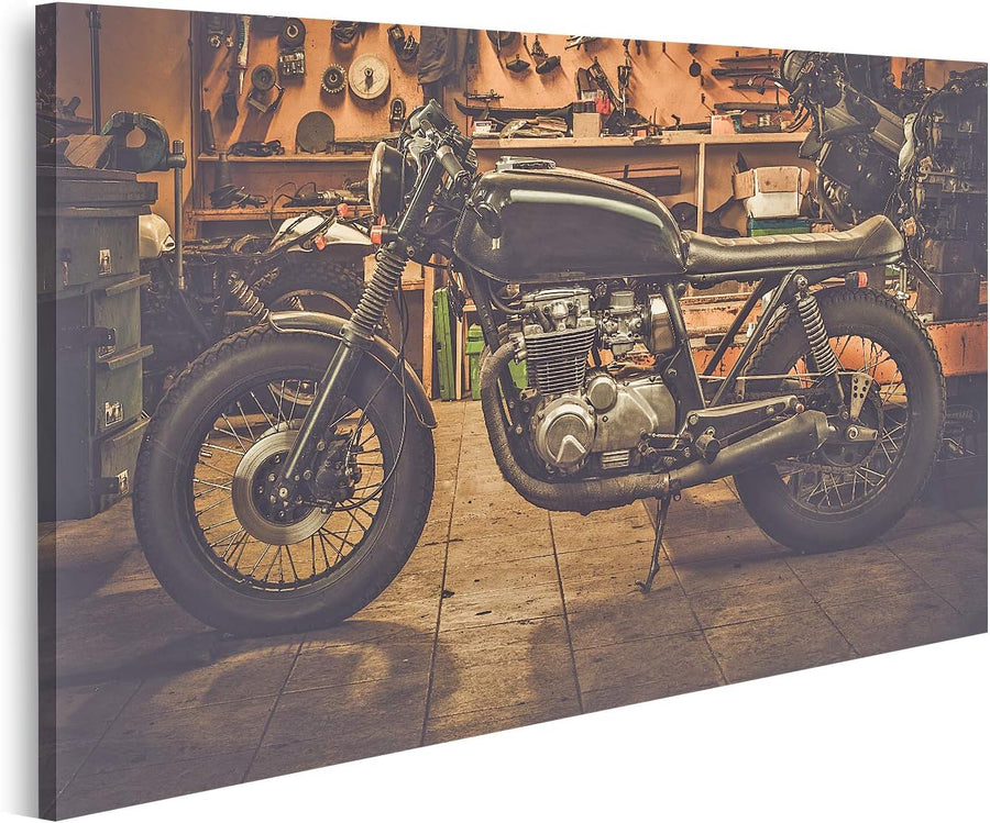 islandburner Bild auf Leinwand Cafe Racer Motorrad Im Vintage Stil In Einer Garage Bilder Wandbilder