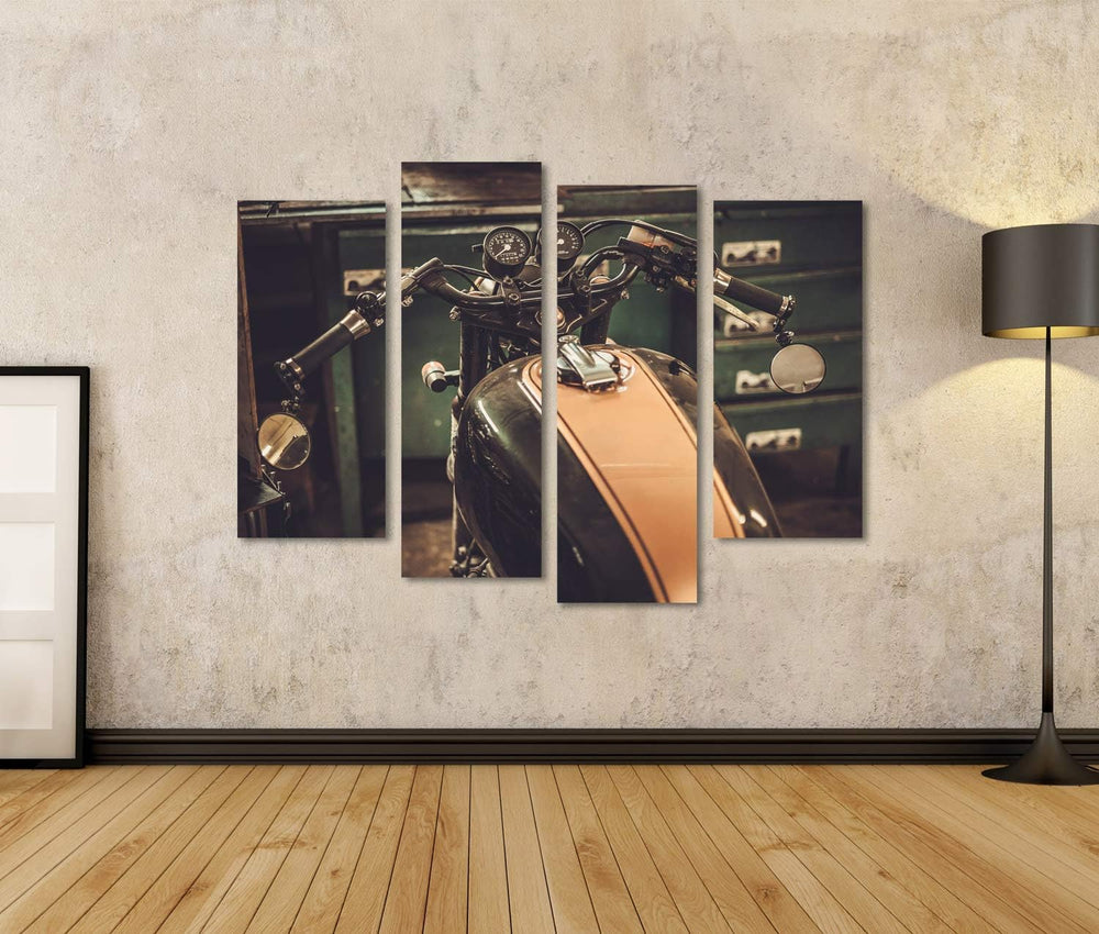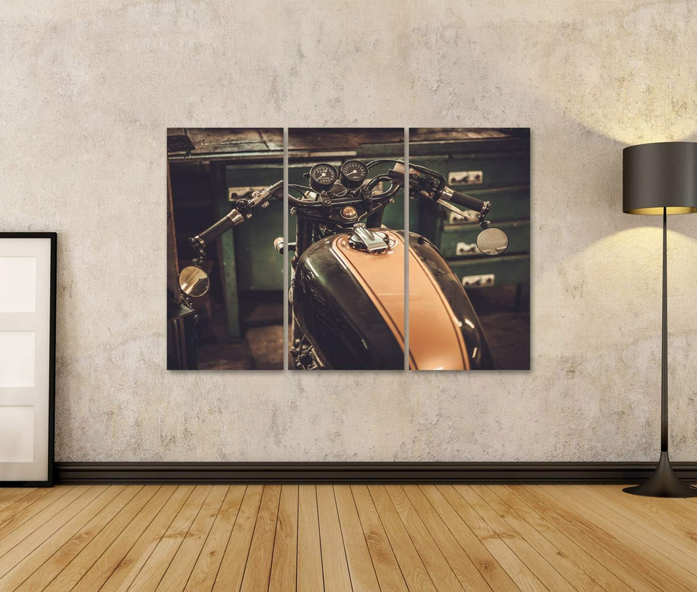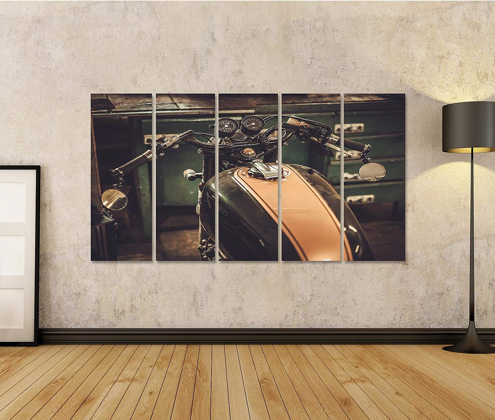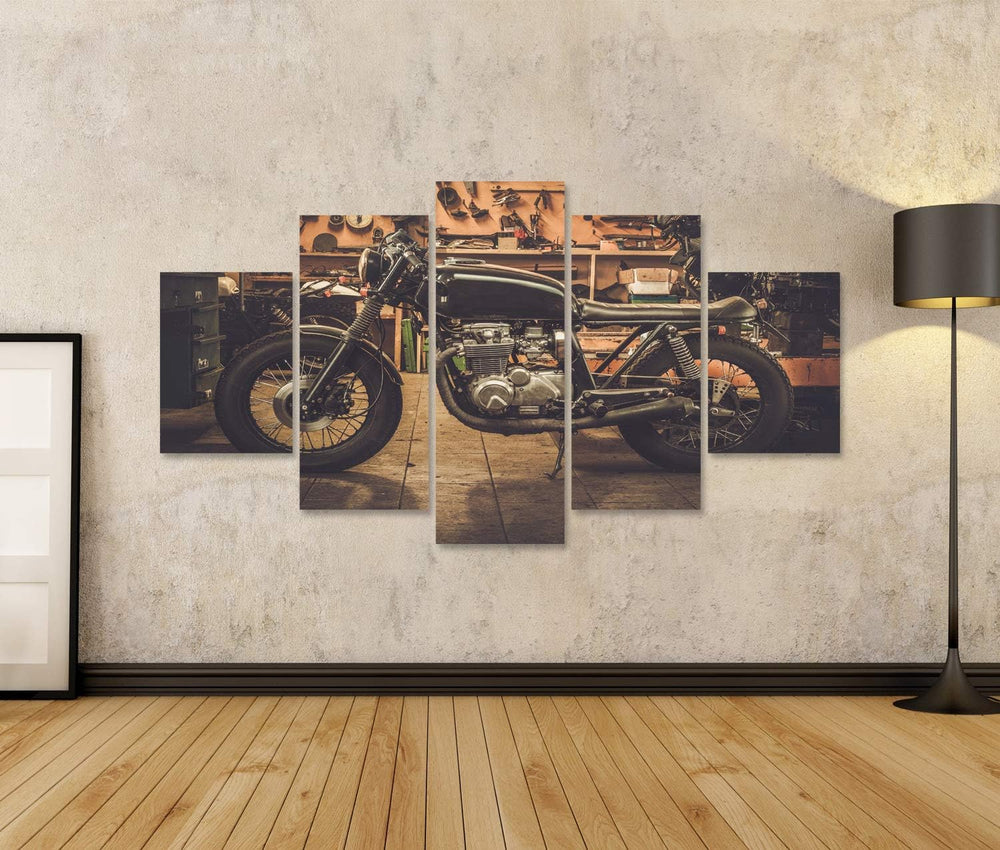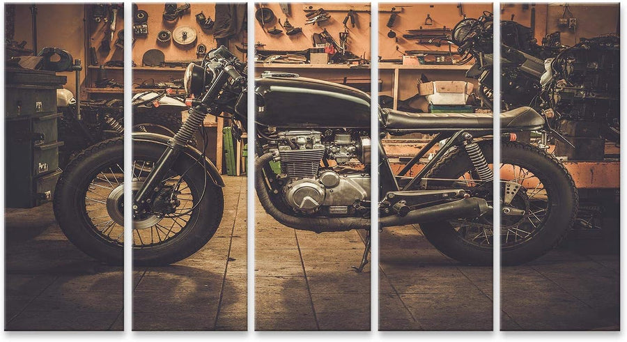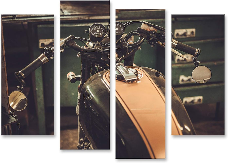 islandburner Bild auf Leinwand Cafe Racer Motorrad Im Vintage Stil In Einer Garage Bilder Wandbilder
