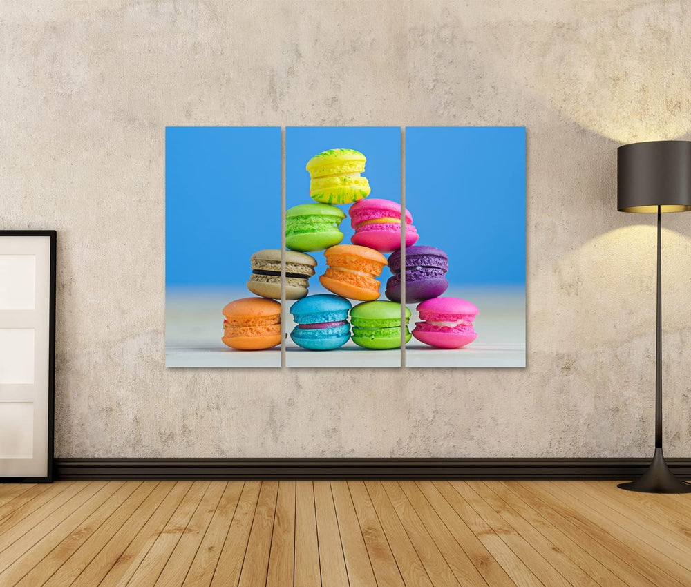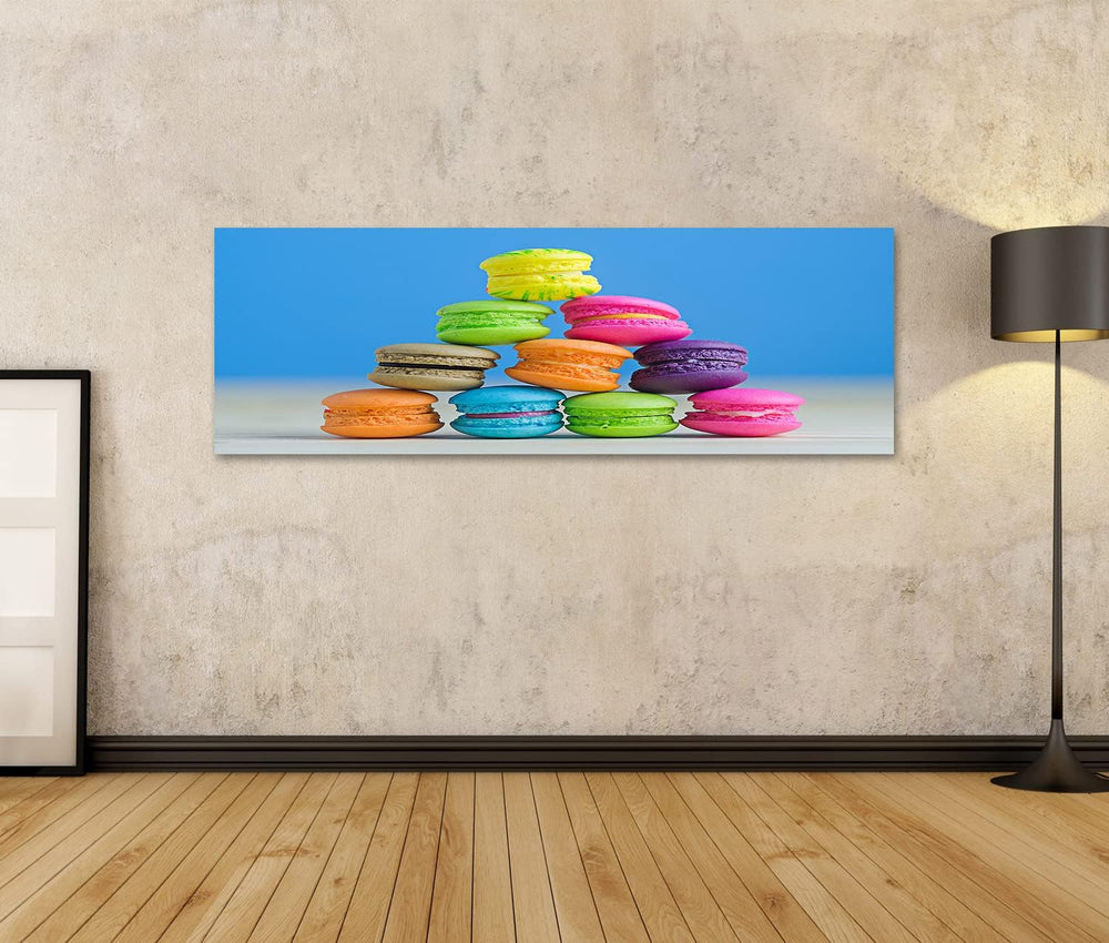 islandburner Bild auf Leinwand Bunte Macarons Vor Blauem Hintergrund Bilder Wandbilder Poster, Leinw