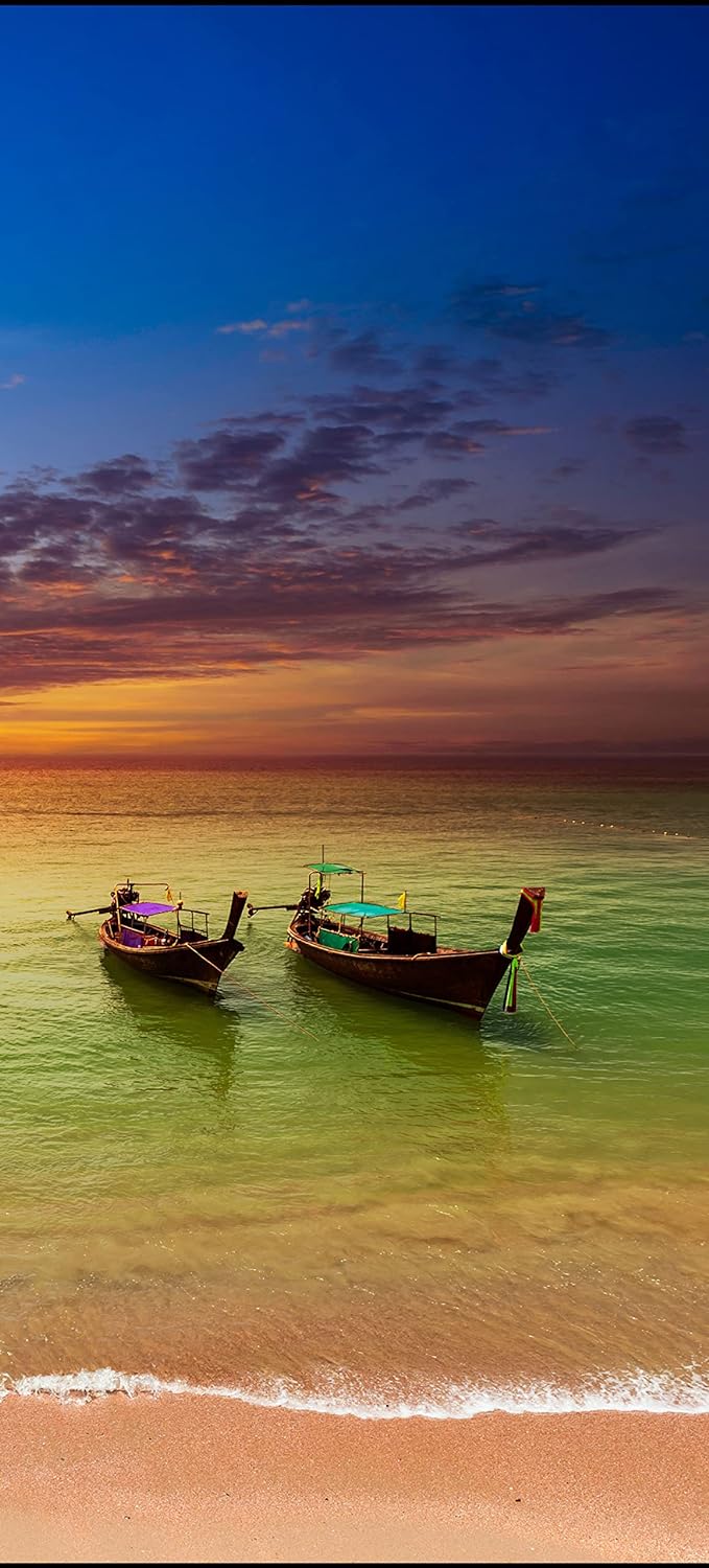 wandmotiv24 Türtapete Boote in einer Seenlandschaft 70 x 200cm (B x H) - Dekorfolie selbstklebend St