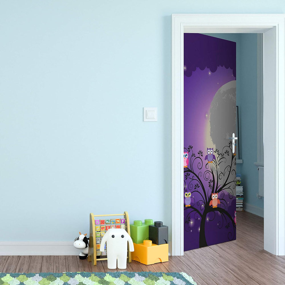wandmotiv24 Türtapete Eulen auf einem Baum 90 x 200cm (B x H) - selbstklebende Strukturtapete Sticke