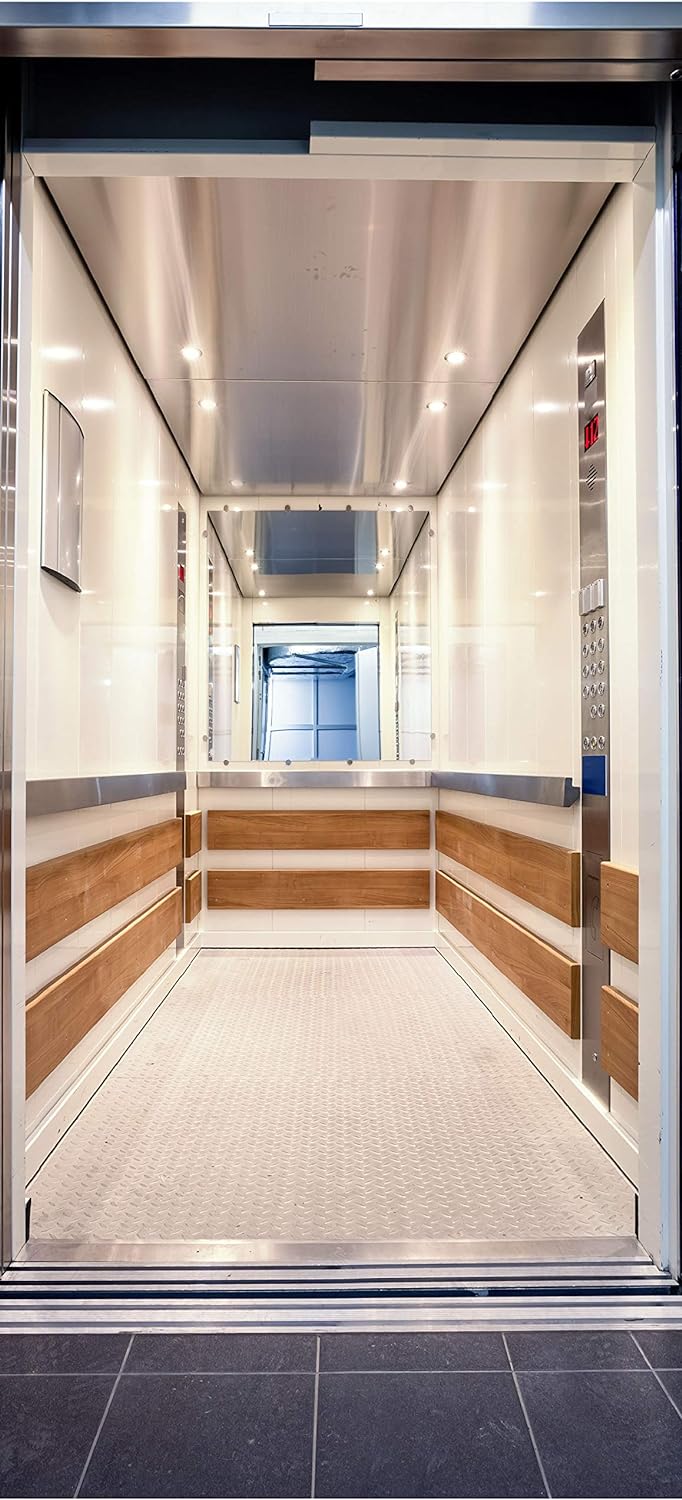 wandmotiv24 Türtapete heller Fahrstuhl, Spiegel, Lampen, Holz 70 x 200cm (B x H) - selbstklebend Vli