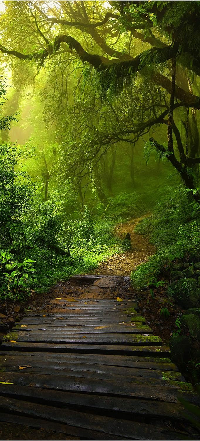 wandmotiv24 Türtapete Holz-weg in mystischem Wald, Urwald 80 x 200cm (B x H) - Dekorfolie selbstkleb