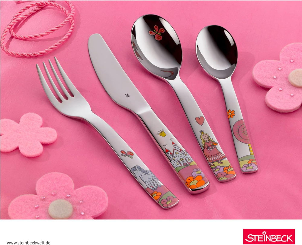 WMF Prinzessin Anneli Kinderbesteck Set 4-teilig, Kinderbesteck Mädchen Edelstahl, Kinderbesteck ab