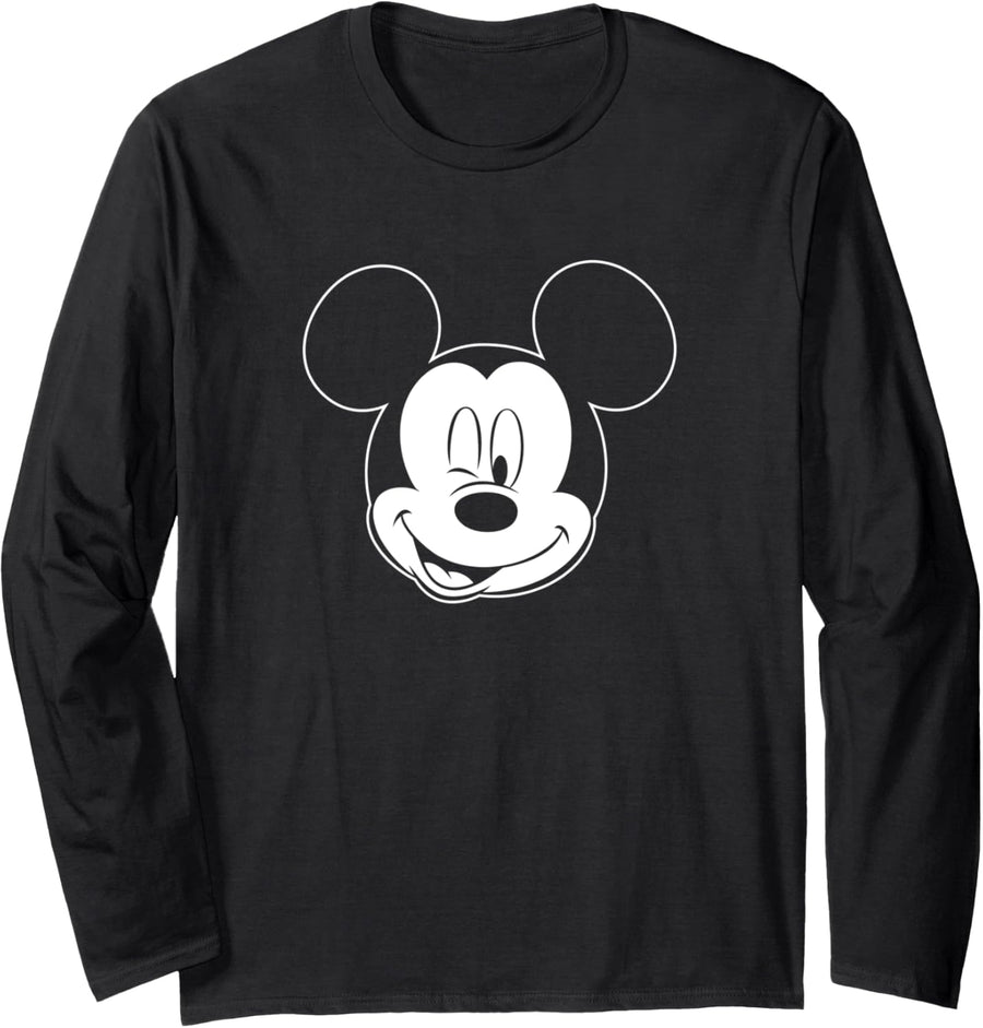 Disney Mickey Winking Plain Face Outline Langarmshirt