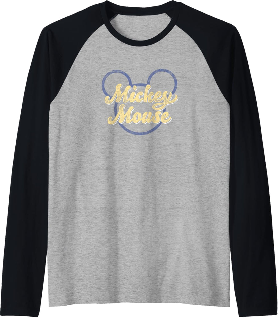 Disney Mickey Yellow Script Mouse Ears Outline Raglan