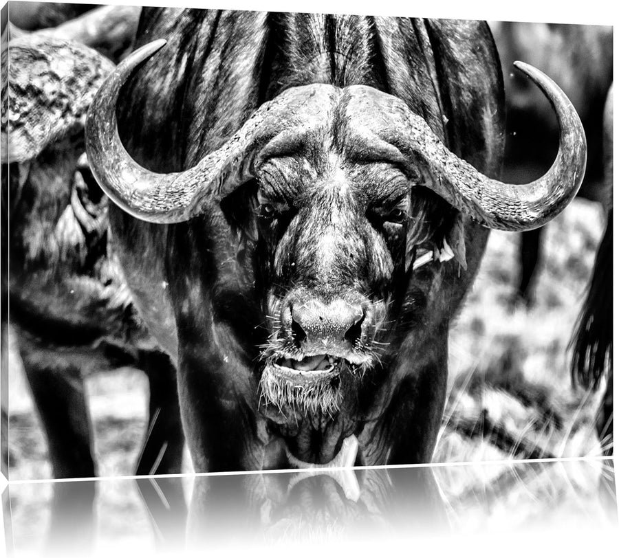 Pixxprint Monocrome, Wasserbüffel Schwarz/weiss, Format: 100x70 auf Leinwand, 100x70