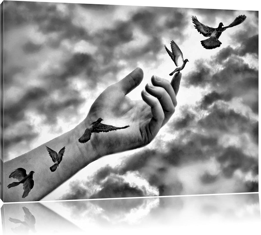 Pixxprint Monocrome, Vögel fliegen in die Freiheit, Format: 100x70 auf Leinwand, 100x70