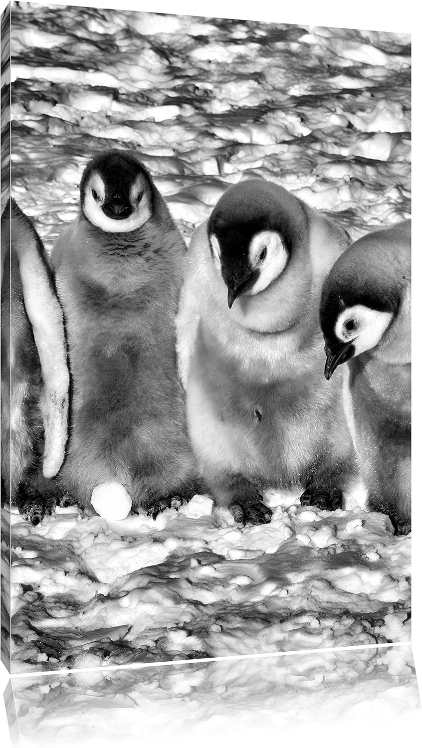 Pixxprint Monocrome, Vier Kaiserpinguin-Küken, Format: 100x70 auf Leinwand, riesige Bilder fertig ge