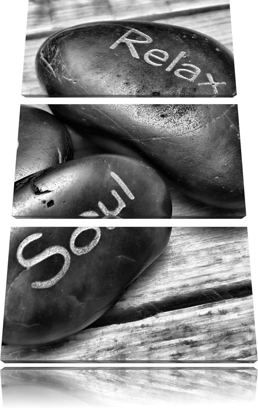 Pixxprint Monocrome, Wellness Steine Body Soul Relax 3-Teiler Leinwandbild 120x80 Bild auf Leinwand
