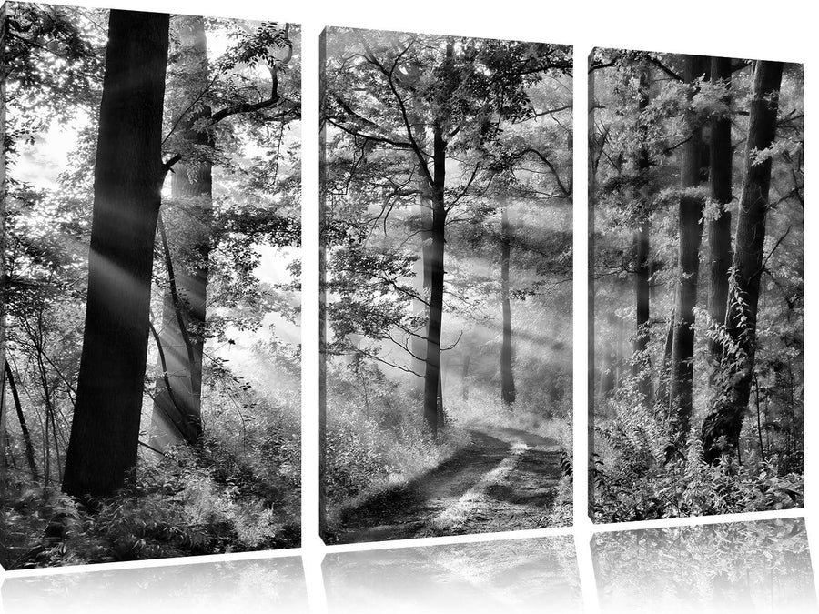 Pixxprint Monocrome, Waldweg im Winter 3-Teiler Leinwandbild 120x80 Bild auf Leinwand