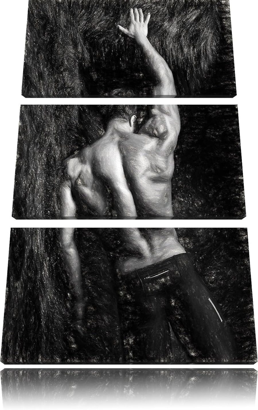 Pixxprint Muskulöser sexy Mann Kunst B&W als Leinwandbild | Grösse: 3 Teilig (120x80) | Wandbild| Ku
