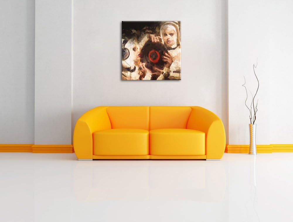 Pixxprint Mysteriöse DJ Frauen Pinsel Effekt, Format: 70x70 auf Leinwand, 70x70
