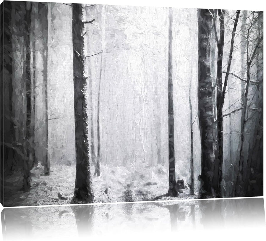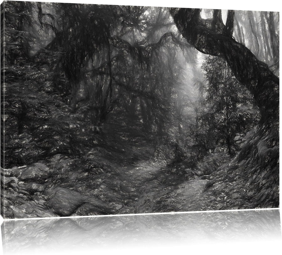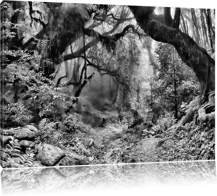 Pixxprint Mystischer Regenwald Schwarz/Weiss, Format: 100x70 auf Leinwand, riesige Bilder fertig ger