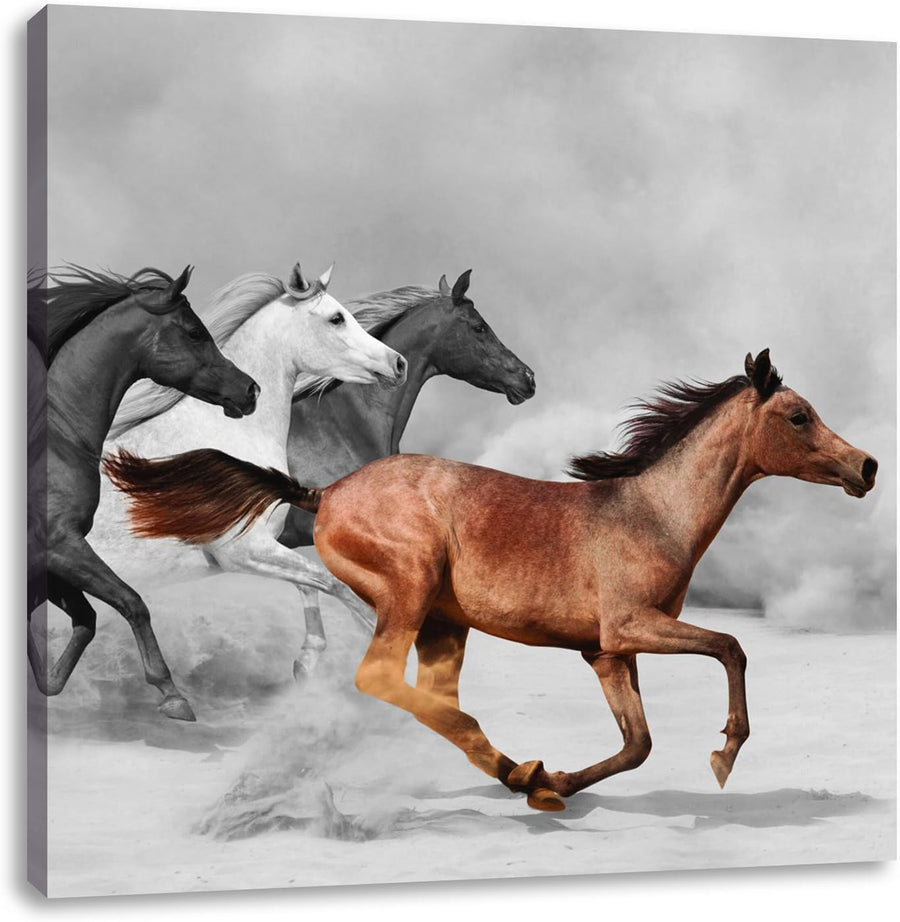 Pixxprint Mustangs in der Wüste als Leinwandbild Quadratisch/Grösse: 70x70 / Wandbild/Kunstdruck/fer