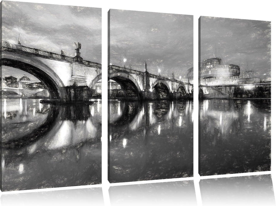 Pixxprint Nachtansicht von S. Angelo-Brücke Kunst Buntstift Effekt 3-Teiler Leinwandbild 120x80 Bild