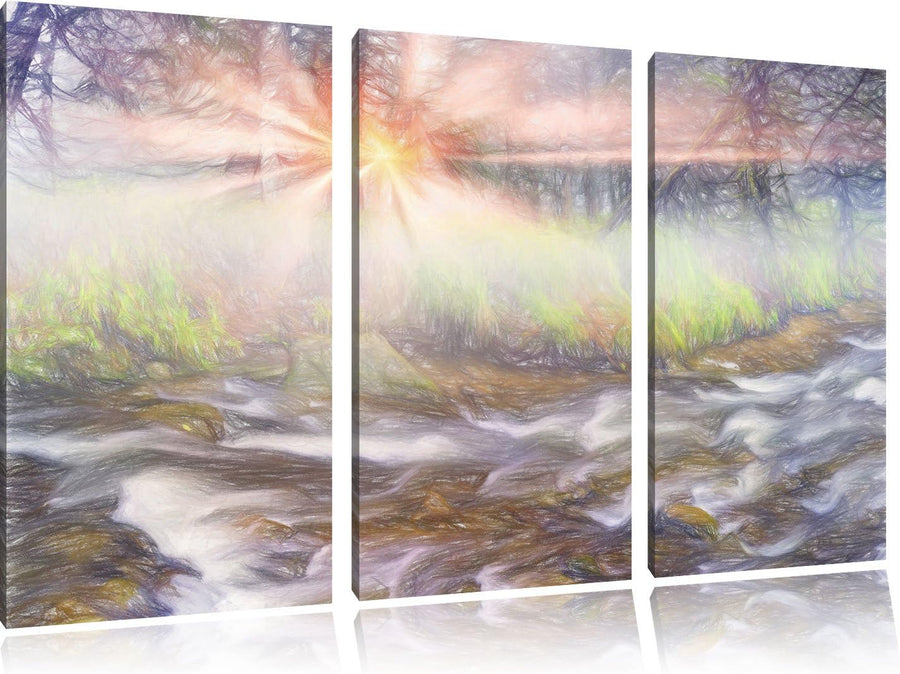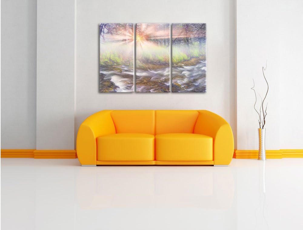 Pixxprint Nebeldickicht im Wald als Leinwandbild/Grösse: 3 Teilig (120x80) cm/Wandbild/Kunstdruck/fe