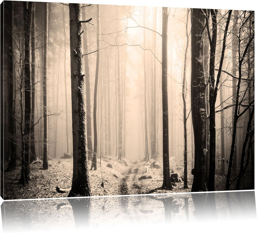 Pixxprint Nebeldickicht im Wald als Leinwandbild/Grösse: 100x70 / Wandbild/Kunstdruck/fertig bespann