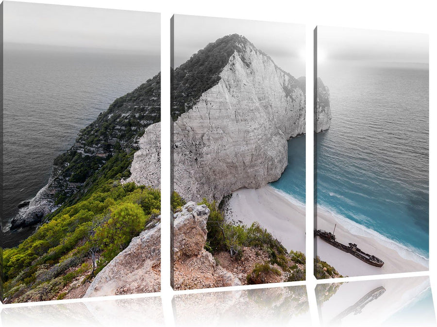 Pixxprint Nagio Strand im Sonnenuntergang B&W Detail 3-Teiler Leinwandbild 120x80 Bild auf Leinwand