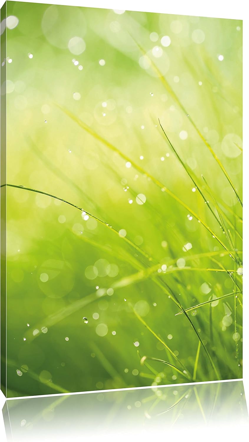 Pixxprint Nasses Gras, Format: 100x70 auf Leinwand, XXL riesige Bilder fertig gerahmt mit Keilrahmen