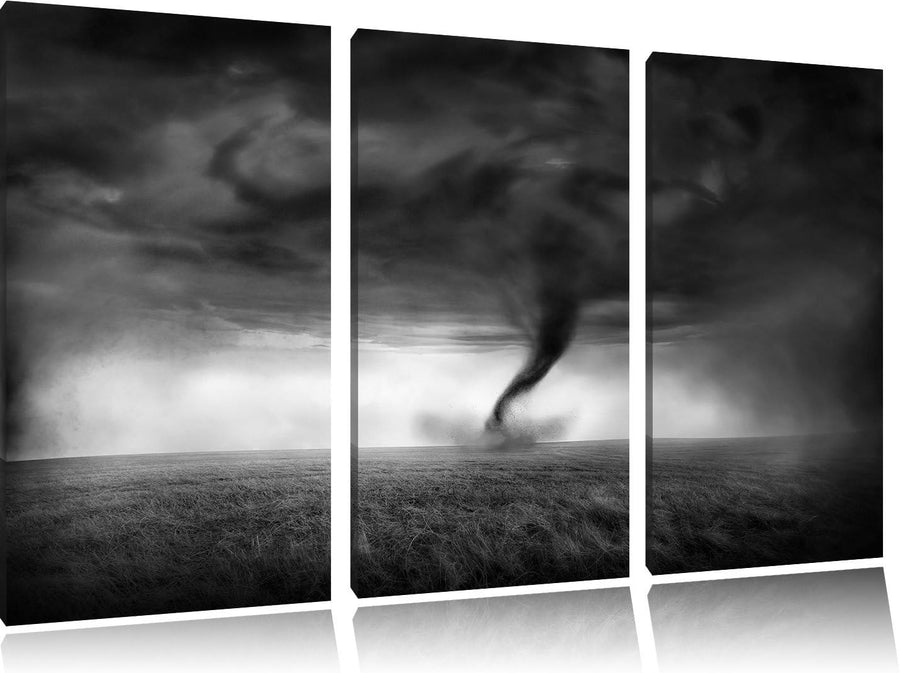 Pixxprint Naturgewalt Tornado Schwarz/Weiss 3-Teiler Leinwandbild 120x80 Bild auf Leinwand