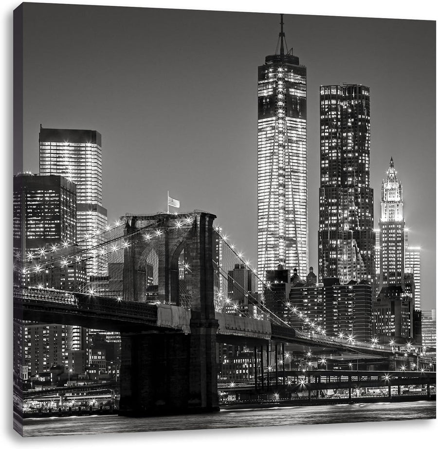Pixxprint New York City Skyline Brücke bei Nacht, Format: 70x70 auf Leinwand, 70x70