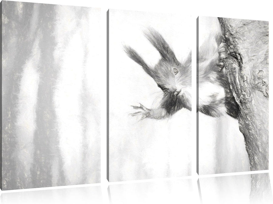 Pixxprint Neugierig rotes Eichhörnchen Kunst B&W 3-Teiler Leinwandbild 120x80 Bild auf Leinwand