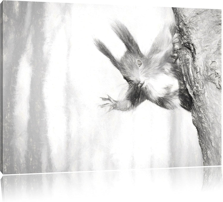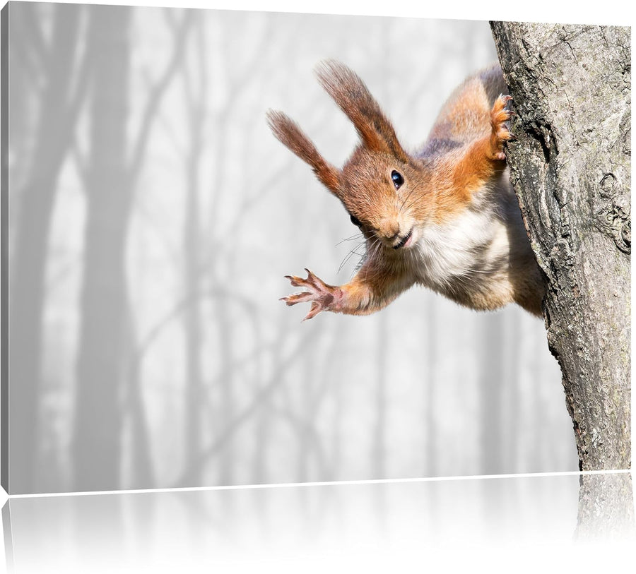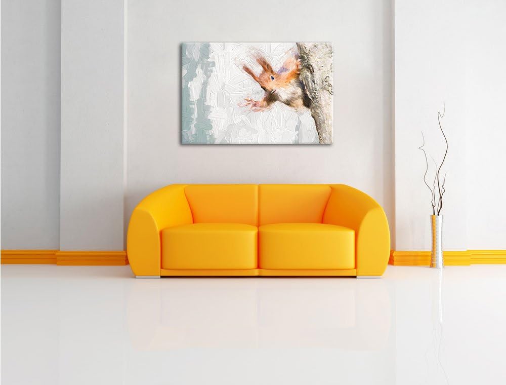 Pixxprint Neugierig rotes Eichhörnchen Kunst als Leinwandbild/Grösse: 100x70 / Wandbild/Kunstdruck/f