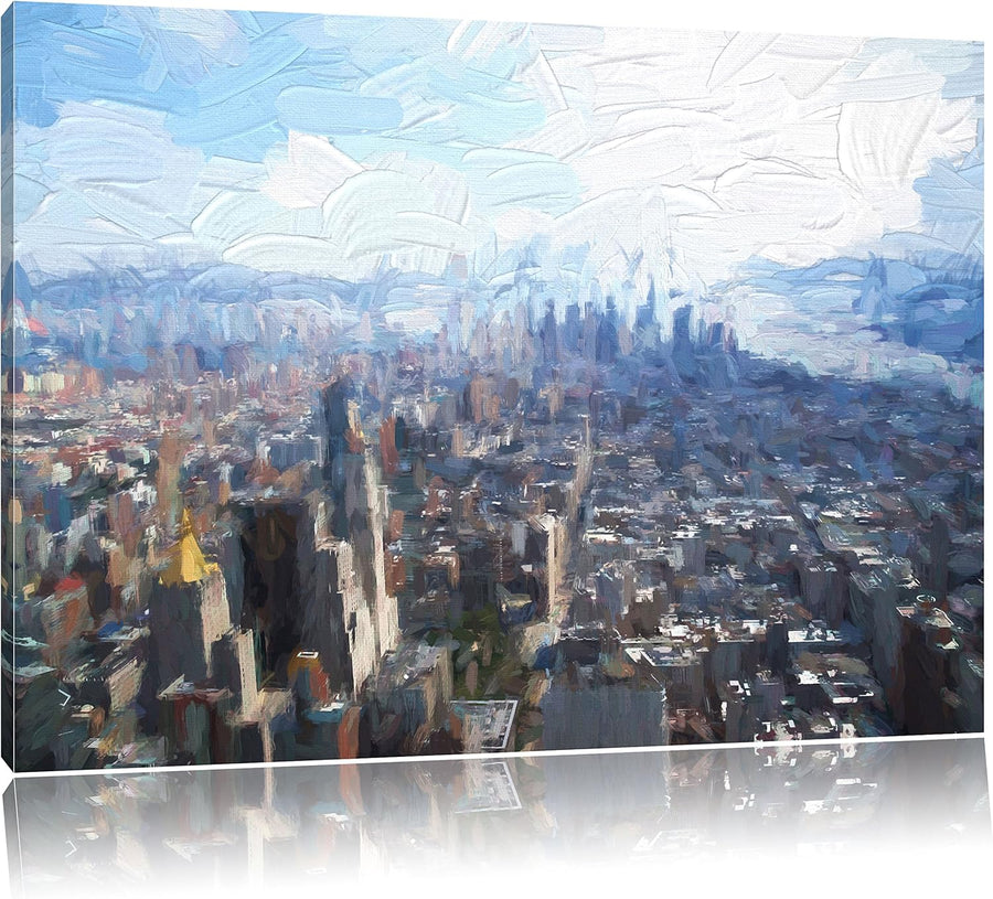 Pixxprint New York City Panorama Kunst Pinsel Effekt, Format: 100x70 auf Leinwand, XXL riesige Bilde