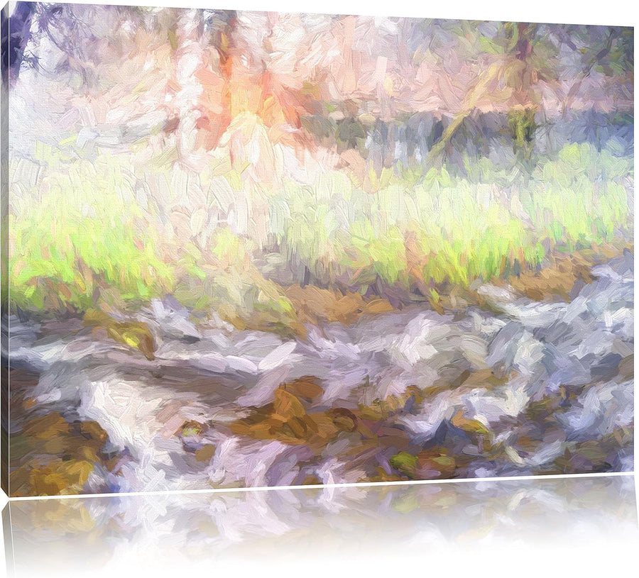 Pixxprint Nebeldickicht im Wald Kunst Pinsel Effekt, Format: 100x70 auf Leinwand, 100x70