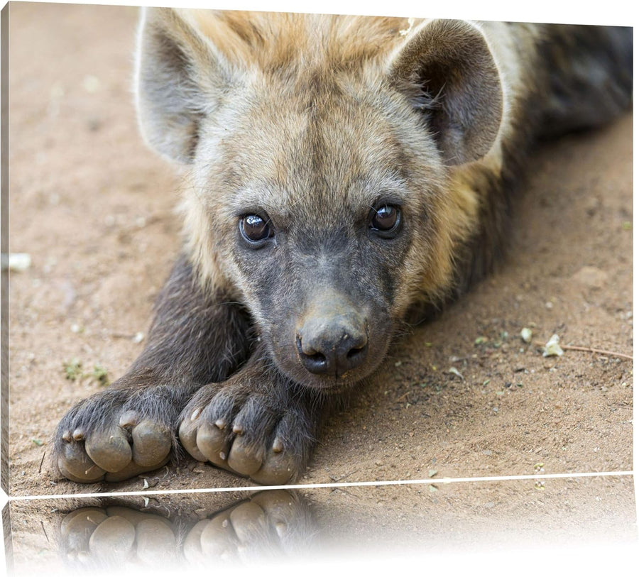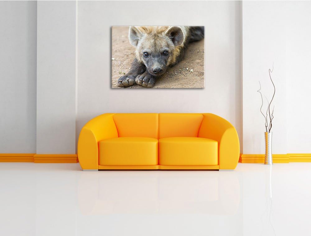 Pixxprint niedliche Hyäne auf Leinwand, XXL riesige Bilder fertig gerahmt mit Keilrahmen, Kunstdruck